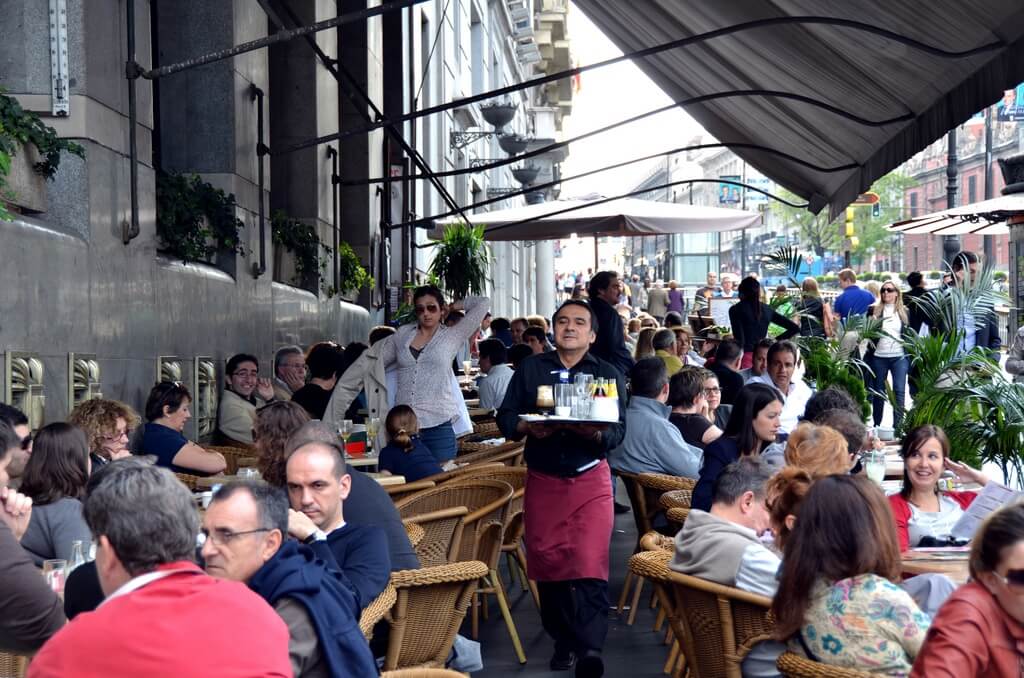 In the summer many of Madrid’s bars and restaurants spill out onto the city’s pavements and squares.